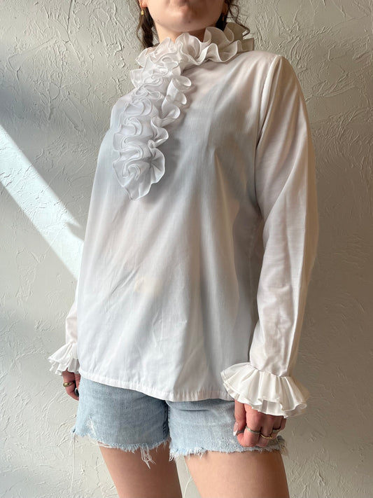 70s 'Ben Rose' White Ruffle Blouse / Union Made / Small