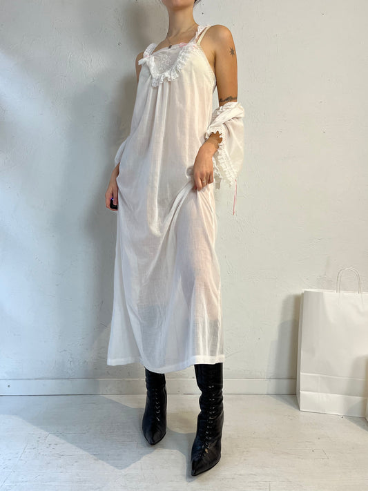 60s 'Bert Yelin' Union Made White Cotton Poly Night Gown Set / Small
