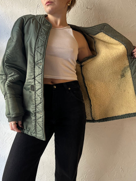 80s Heavy Duty Faux Shearling Lined Liner Jacket / Small
