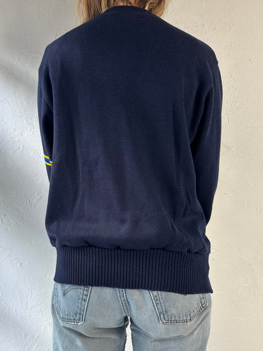 80s ‘BC’ V Neck Varsity Navy Blue Sweater / Medium