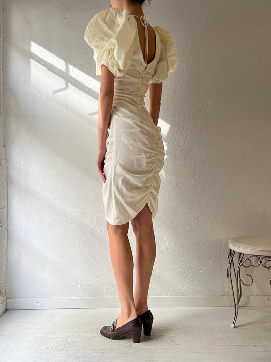 80s Handmade Lace Sleeve Off White Wedding Dress / Small