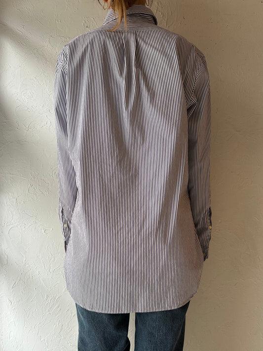 Y2k 'Ralph Lauren' Blue Striped Cotton Dress Shirt / Medium