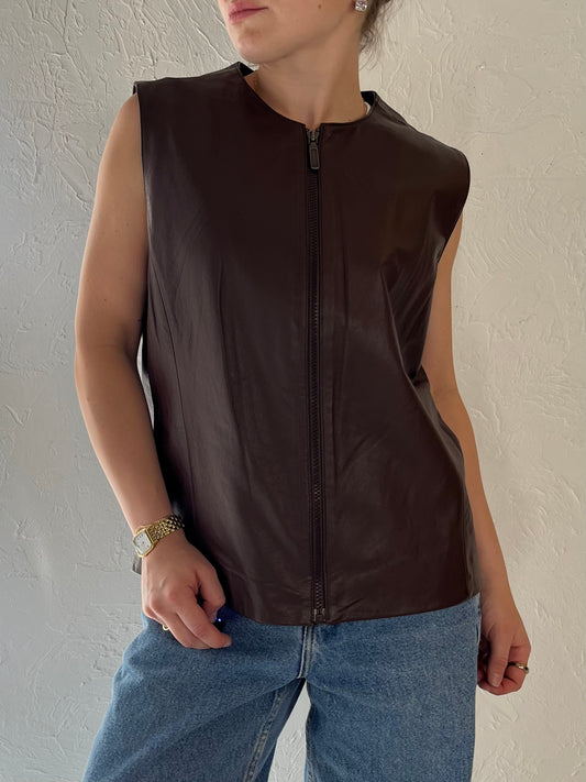 Y2k 'Preston & York' Brown Leather Vest / Medium