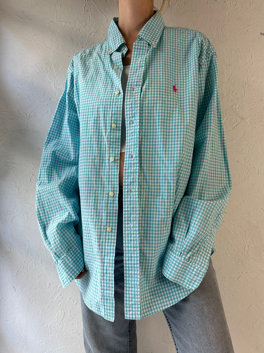 Y2k 'Ralph Lauren' Blue Gingham Cotton Shirt / XL
