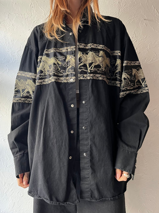 Y2k 'Roper' Black Western Pearl Snap Shirt / Large