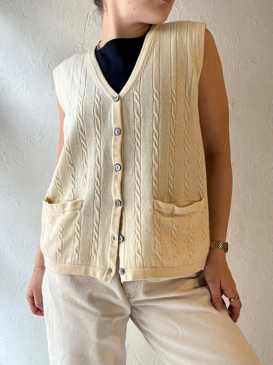 Y2k 'Tabi' Cream Cable Knit Wool Vest / Large
