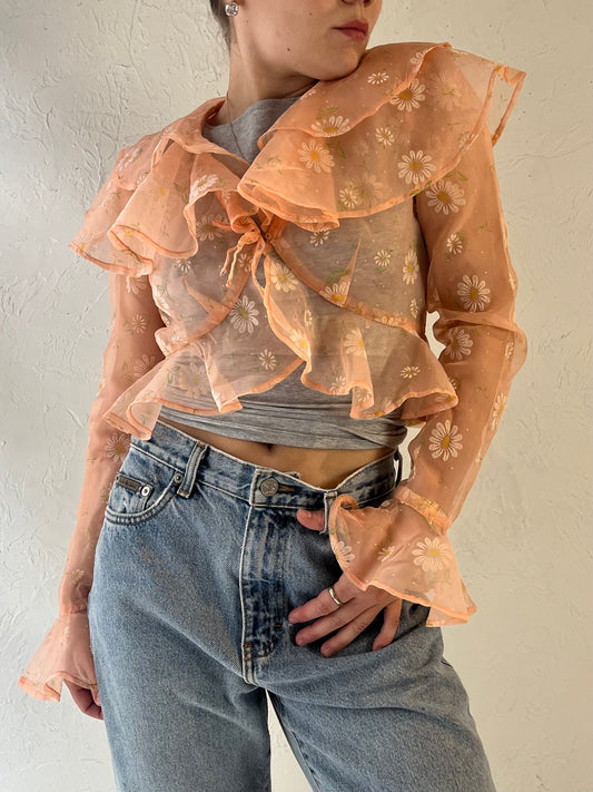 70s Handmade Mesh Peachy Blouse / Small