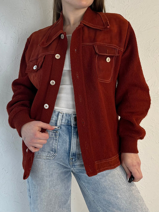 70s Red Acrylic Knit Jacket / Small
