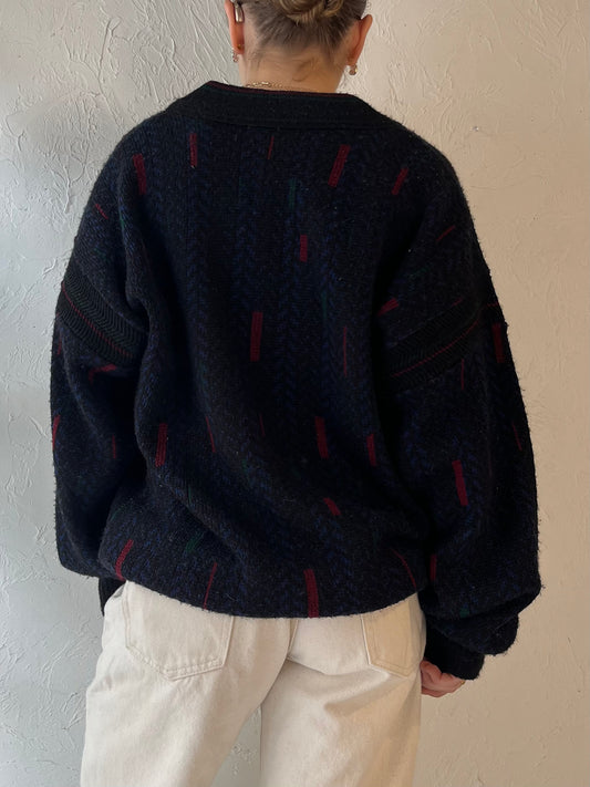 80s 'London Fog' V Neck Knit Sweater / Medium