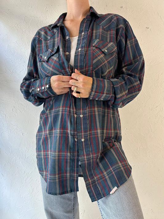 80s 'MWG' Light Weight Plaid Western Pearl Snap Shirt / Medium