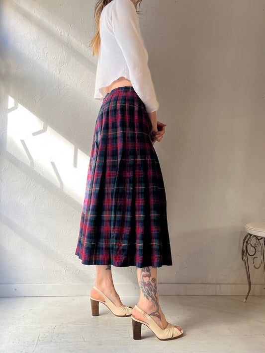 80s 'Pendleton' Red Tartan Midi Skirt / Medium