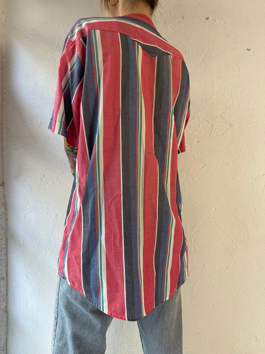 80s 90s 'MWG' Striped Short Sleeve Pearl Snap Shirt / Large