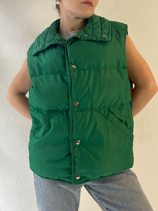 80s 'Topher' Green Quilted Nylon Down Puffer Vest / Large