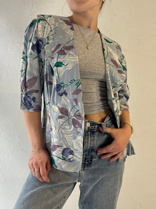 80s 'SL Petites' Blue Floral Print Collared Dress / Medium