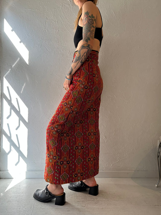 70s 'Le Voy's' Paisley Quilted Maxi Skirt / Small