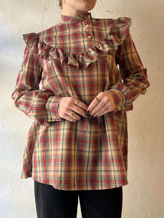 70s ‘Andra Inc’ Plaid Western Ruffle Blouse / Medim