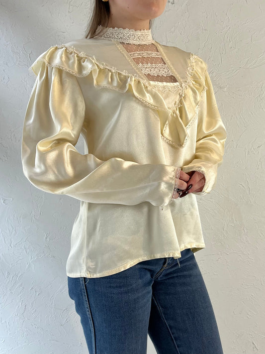 70s ‘Jessica Gunnies’ Cream Silky Peasant Blouse / Small - Medium