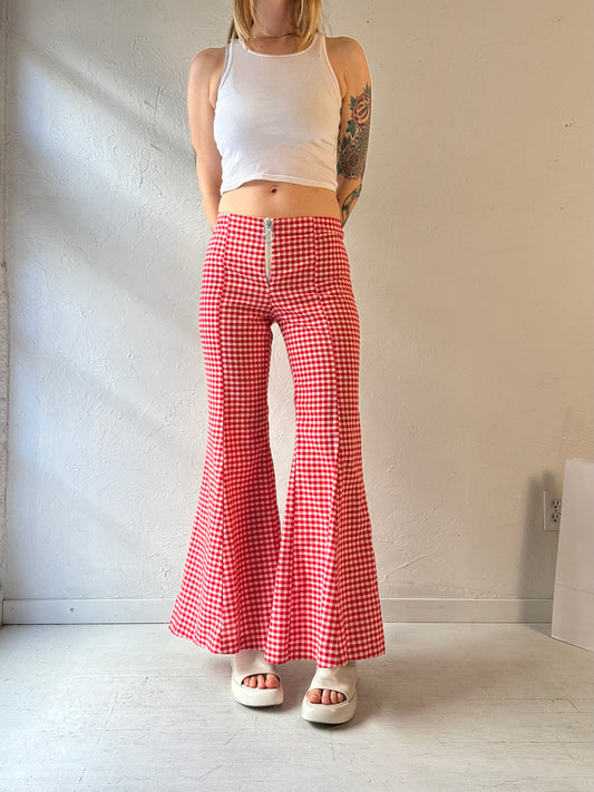 70s ‘JC Penny’ Low Rise Red Gingham Bell Bottoms / Small
