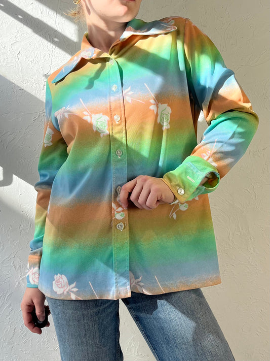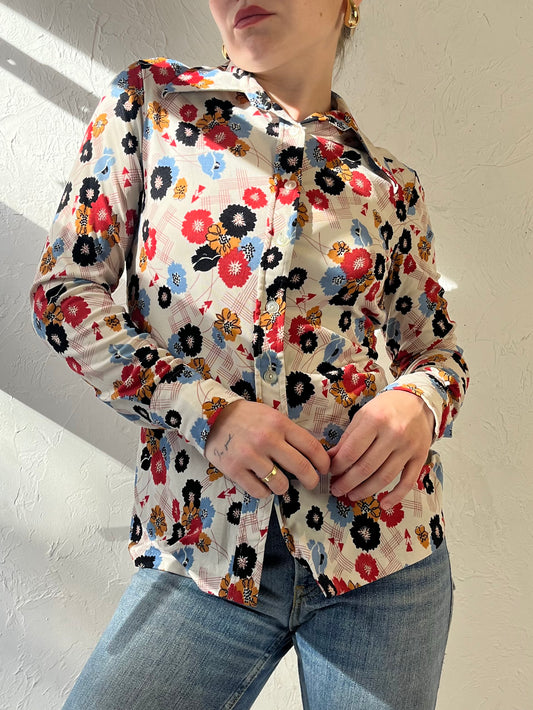 70s ‘Hukap’ Floral Button Up Blouse / Small
