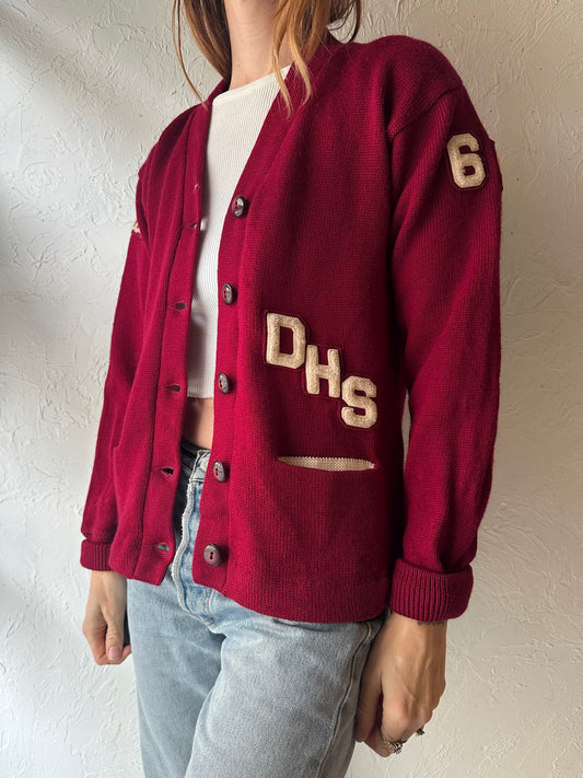 70s Virgin Wool Varsity Cardigan Sweater / Small