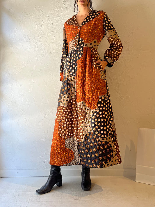 70s ‘Louis Marie’ Long Sleeve Quilted Maxi Dress / Medium