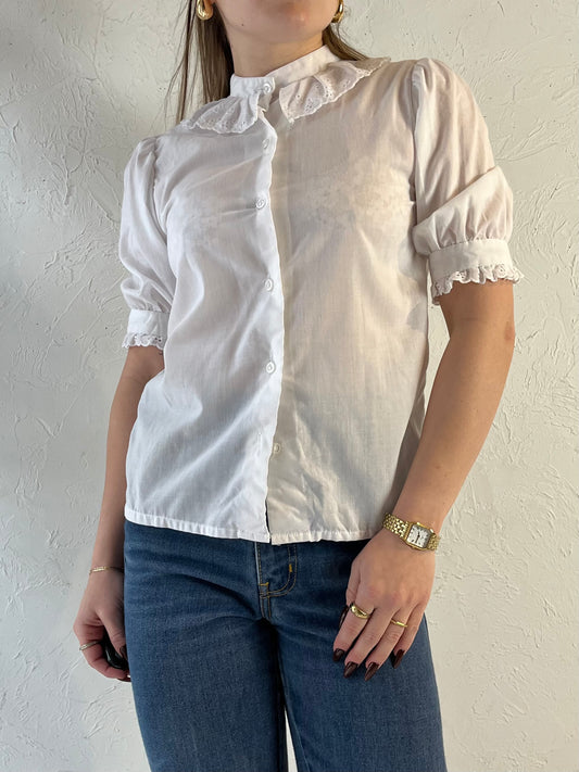 70s 'Sears' White Collared Blouse / XS