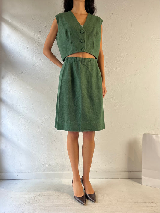 Vintage Handmade Green Wool Two Piece Set / Small