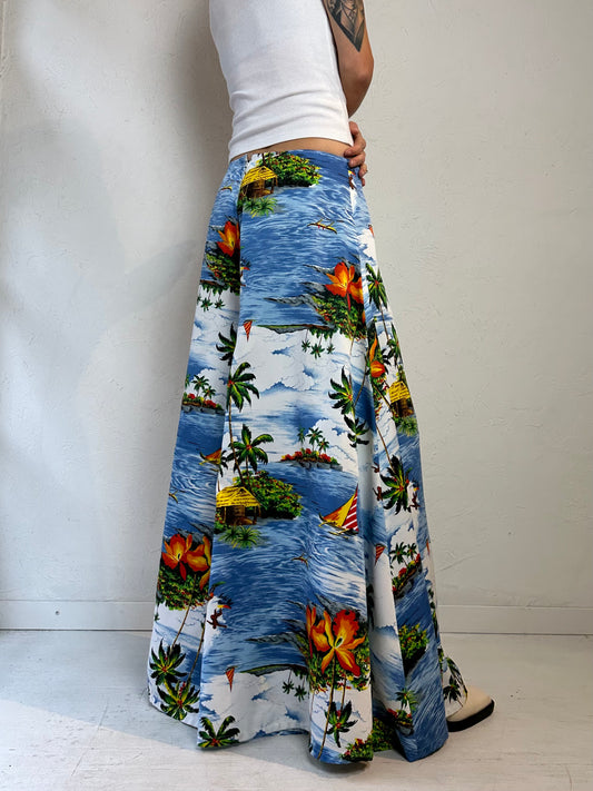 70s Hawaiian Print Extra Wide Leg Bell Bottoms / Medium