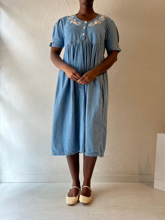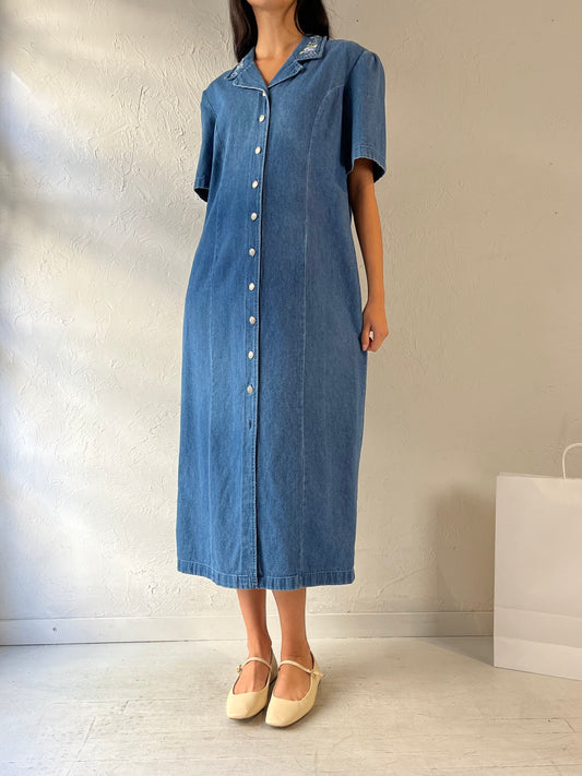 90s 'Daniel Caron' Long Sleeve Denim Dress / Medium