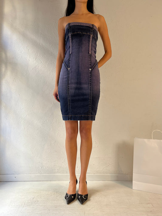 Y2k 'Baby Phat' Strapless Purple Denim Mini Dress / Small - Medium
