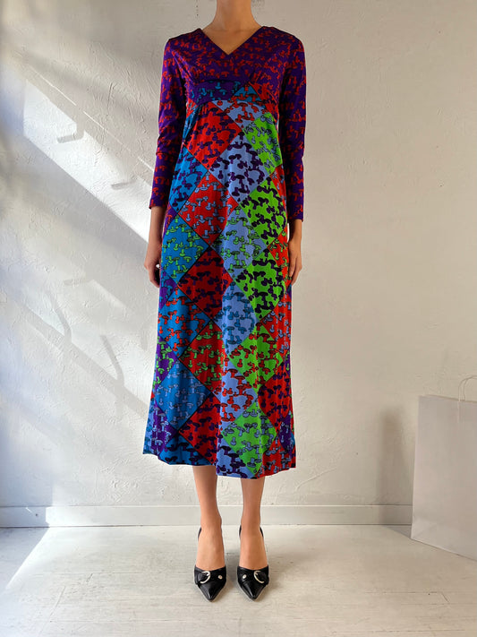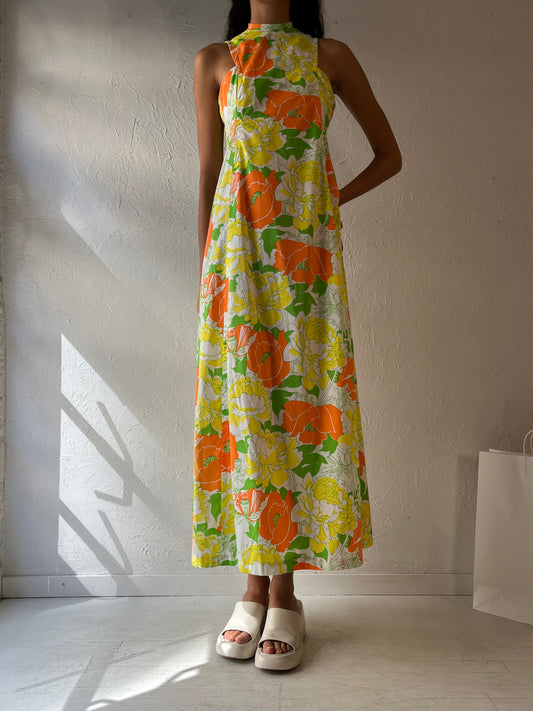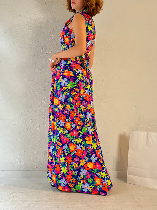 Vintage Handmade Retro Neon Floral Print Maxi Dress / Small