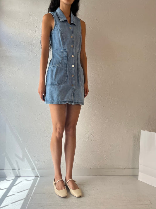 90s 'Vintage Studio' Collared Denim Mini Dress / Small