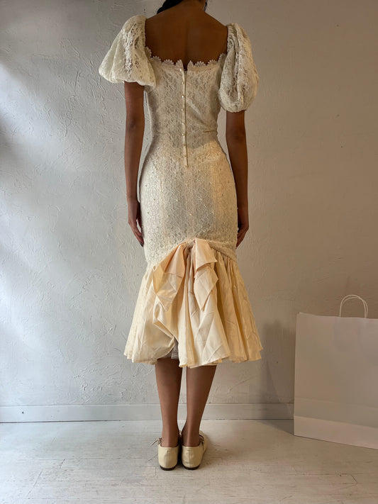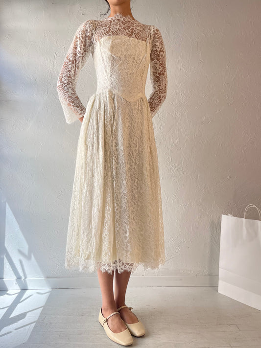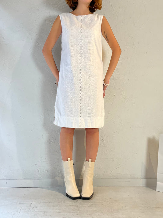 80s 'Marge Hall' White Eyelet Midi Dress / Small