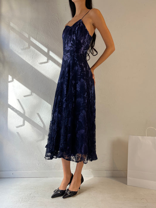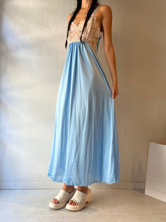 80s 'Van Realt' Blue Lacey Lingerie Slip Dress / Small
