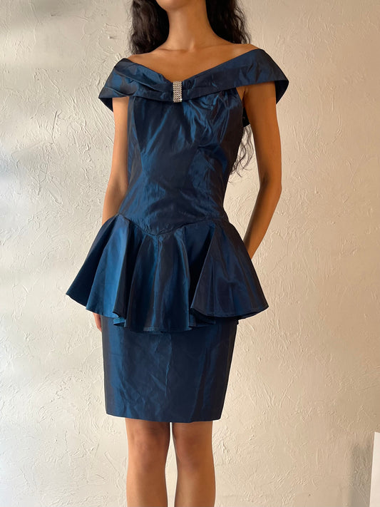 90s 'JS Collections' Blue Formal Mini Dress / Small