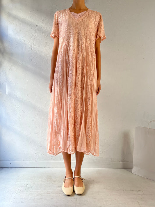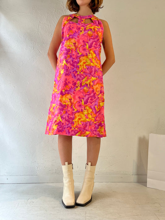 70s Handmade Pink Water Color Cut Out Dress / Medium