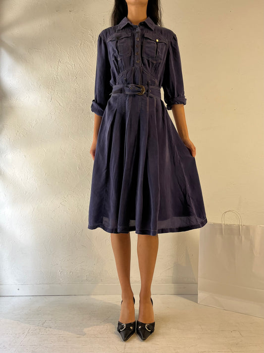 80s 'Karen Alexander' Navy Blue Silk Dress / Small