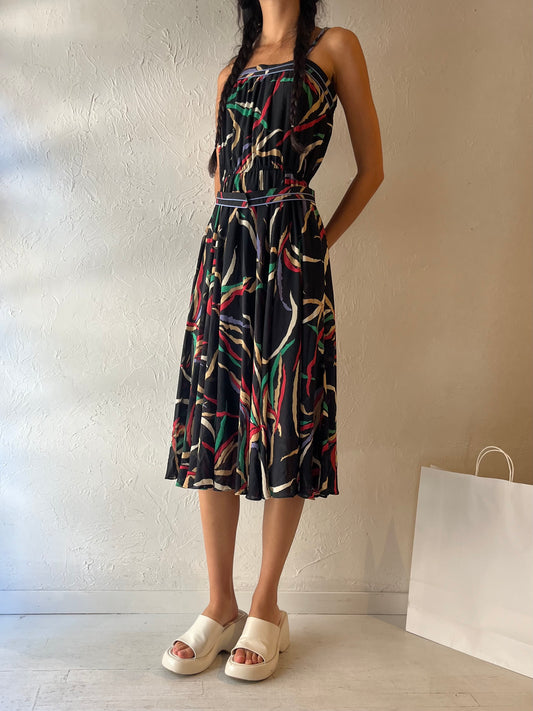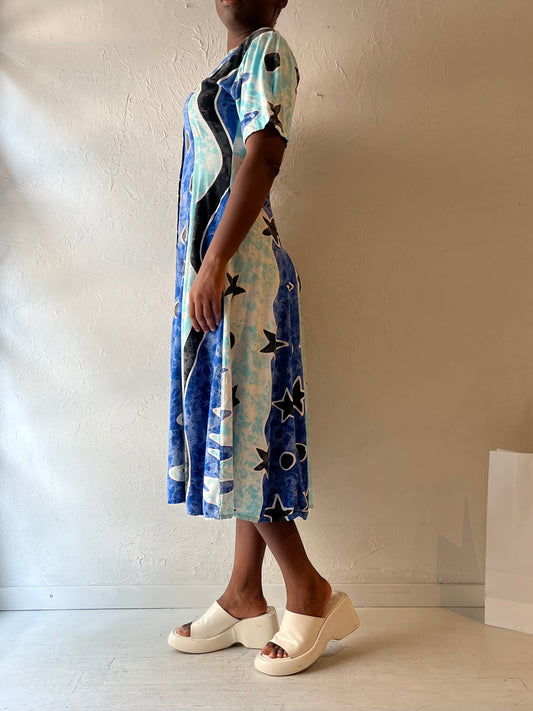 90s 'Yaya' Bue Patterned Rayon Dress / Small - Medium