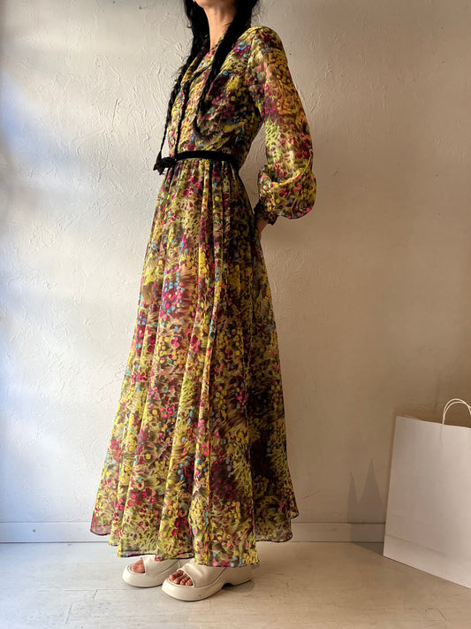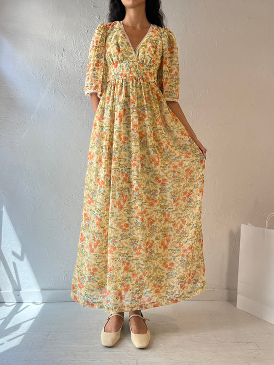 Vintage Handmade Retro Floral Print Maxi Dress / Medium