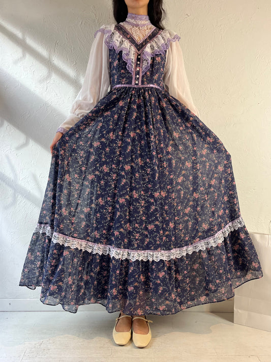 70s ‘Gunne Sax’ Long Sleeve Peasant Dress / Small