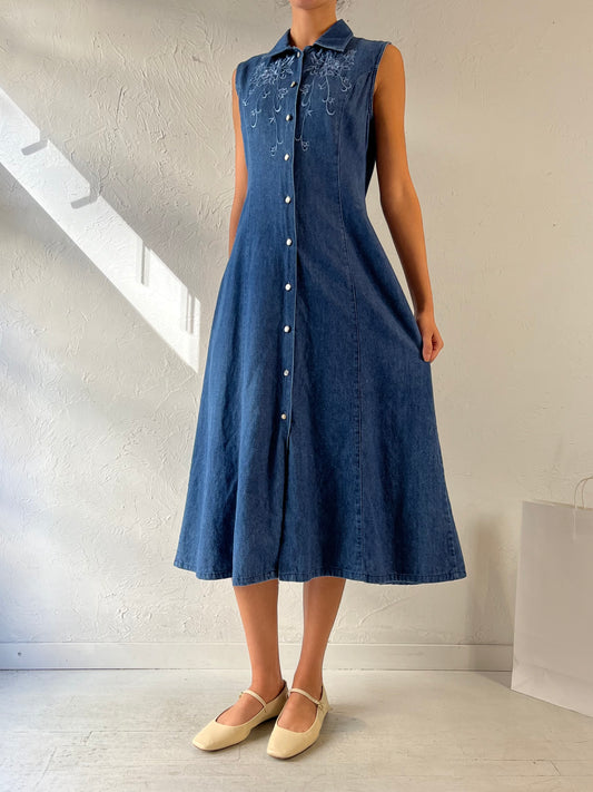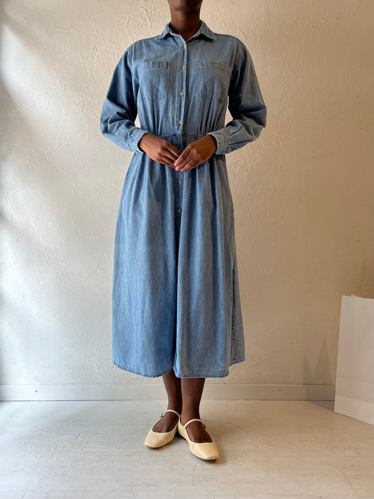 90s ‘Cleo’ Button Up Denim Dress / Large