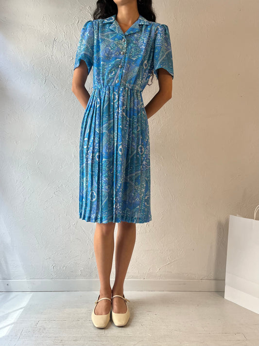 80s 'Leo Damal' Blue Paisley Midi Dress / Small