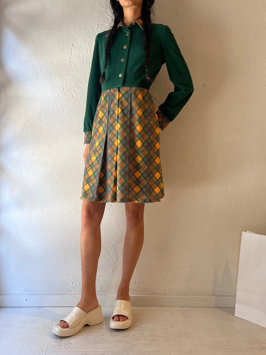 70s 'Pacemaker' Green Long Sleeve Knit Dress / Union Made / Small