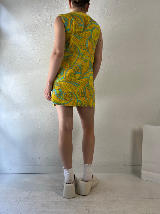 70s Handmade Yellow Paisley Micro Mini Dress / Small