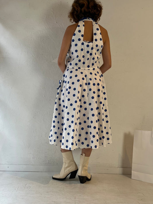 90s 'Carol Anderson' Blue Floral Cotton Midi Dress / Small