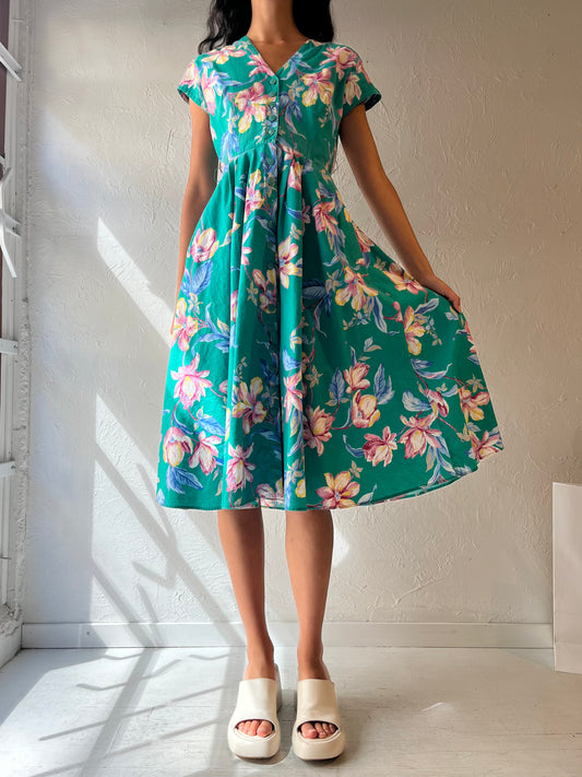 90s 'Molly Molloy' Floral Print Dress / Medium