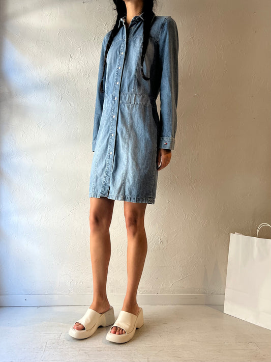 Y2k 'Tommy Hilfiger' Long Sleeve Denim Mini Dress / Small