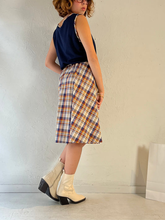 70s 'Toni Todd' Plaid Sleeveless Midi Dress / Medium