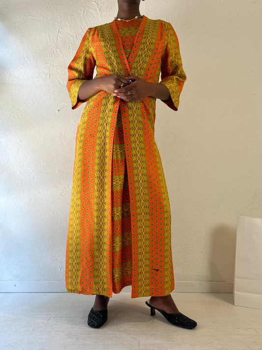 70s ‘Fifth Avenue Robes’ Orange Patterned Kaftan / Medium