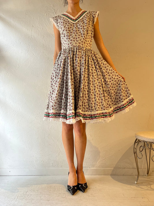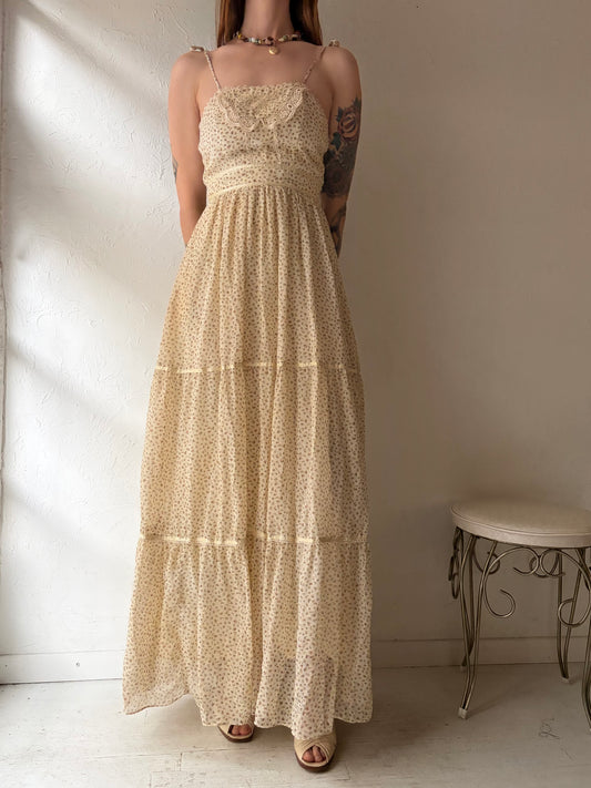 70s 'Candi Jones' Beige Peasant Dress / Small